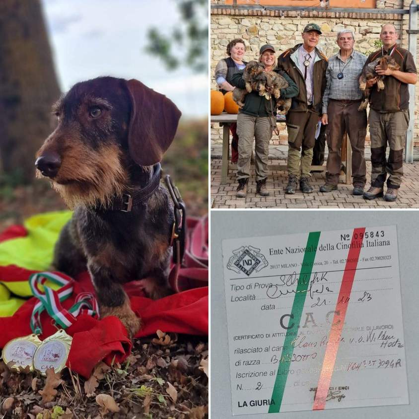 Sp/J 2. Preis, Italien-Inter-Vp 2. Preis, Italien-SchwhK 2. Preis, Italien-BhFK95 1. Preis, Italien-Fbja 1. Preis, BhFK95/J bestanden, ESw/J bestanden, BhN/F verliehen, SchwhN verliehen