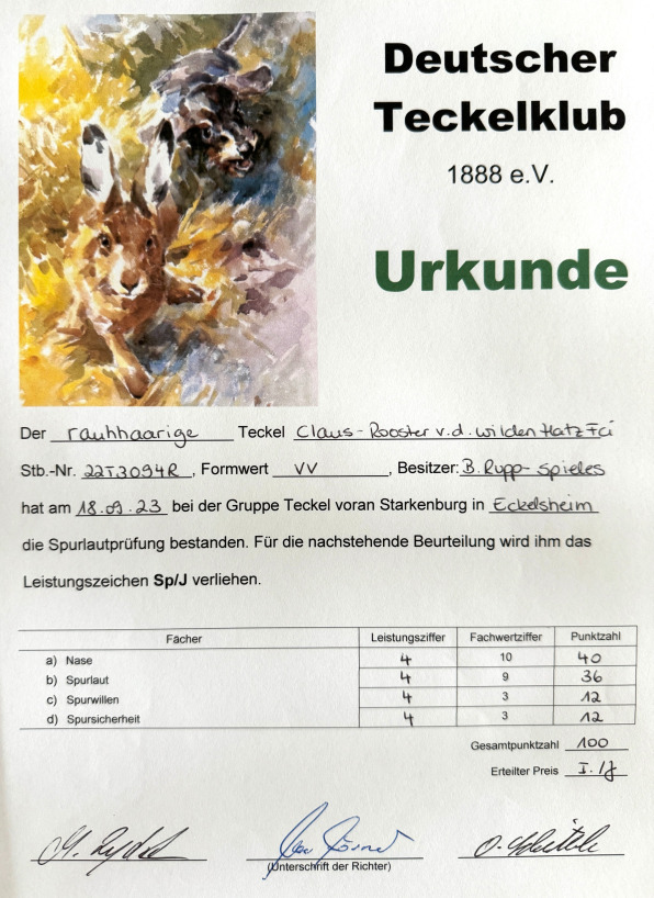 Claus was imported from Germany in February 2024 after he completed his International Versatile Hunting test (Vp) at